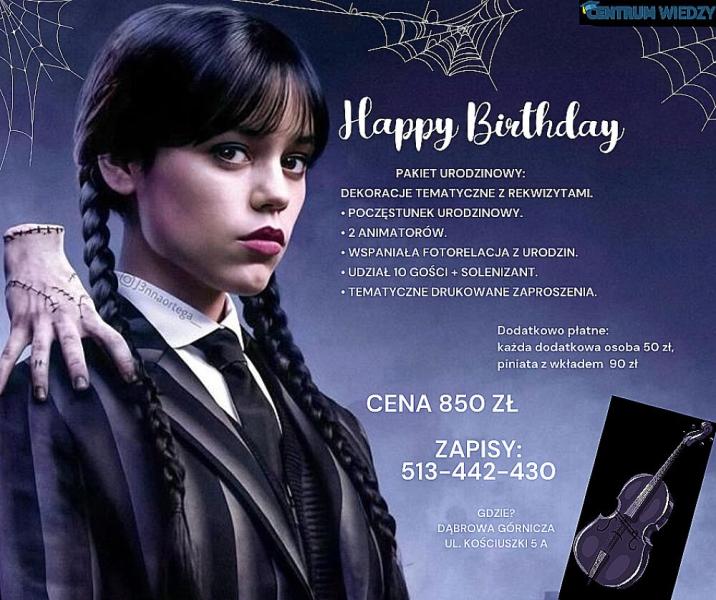 W ramach organizacji urodzin w Dąbrowie Górniczej, oferujemy szeroki wybór tematów przewodnich, między innymi POKEMONY, WENDESDAY, HARRY POTTER czy PODRÓŻE KOSMICZNE. Każde przyjęcie jest pełne atrakcji, angażujących dzieci i rozwijających ich wyobraźnię. Zajmujemy się dekoracjami, poczęstunkiem, animacjami, realizacją zabaw urodzinowych oraz wszelkimi niezbędnymi elementami, które sprawią, że urodziny będą niezapomniane. Dodatkowo własnoręcznie wykonujemy tematyczne zaproszenia dla gości, które są w cenie przyjęcia urodzinowego.
